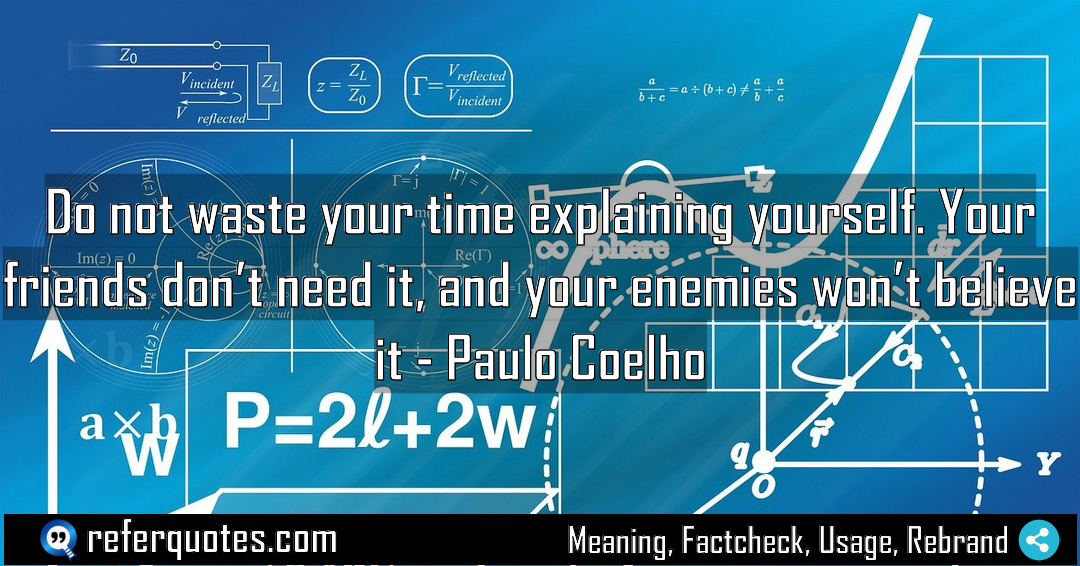 | Quotation | Do not waste your time explaining yourself. Your friends don’t need it, and your enemies won’t believe it |