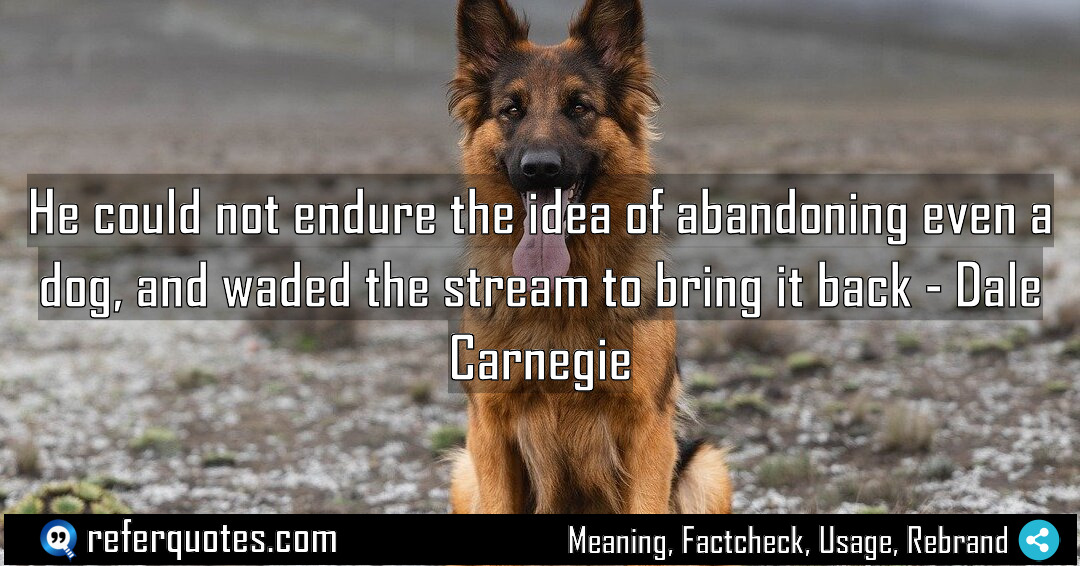 | Quotation | He could not endure the idea of abandoning even a dog, and waded the stream to bring it back |