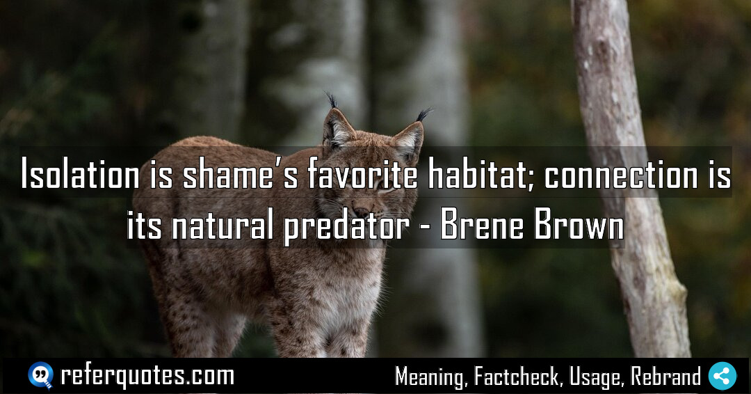| Quotation | Isolation is shame’s favorite habitat; connection is its natural predator |