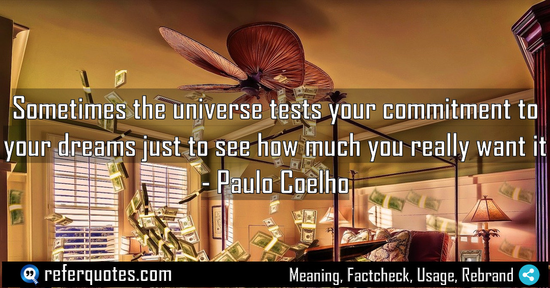 | Quotation | Sometimes the universe tests your commitment to your dreams just to see how much you really want it |