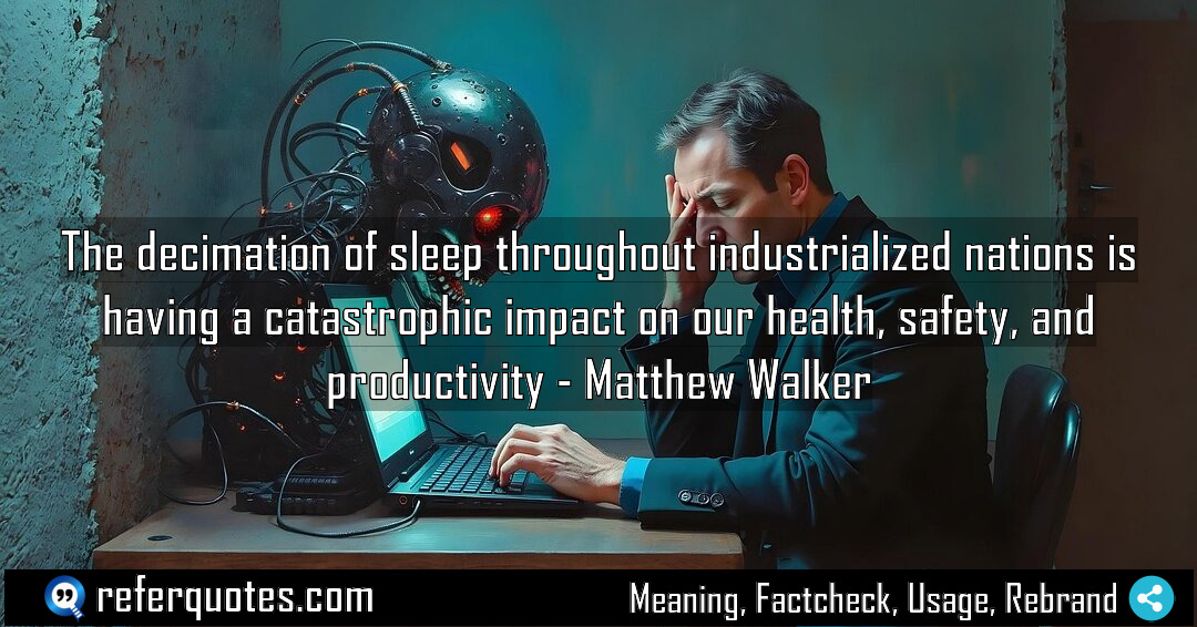 You know, when Matthew Walker said “The decimation of sleep throughout industrialized nations,” he wasn’t just being dramatic. He’s pointing to a silent, global health crisis that’s impacting everything from our safety to our bottom line. It’s one of those quotes that sticks with you because it reframes a personal habit as a societal failure.