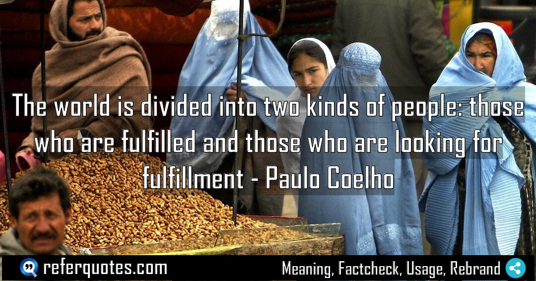 | Quotation | The world is divided into two kinds of people: those who are fulfilled and those who are looking for fulfillment |