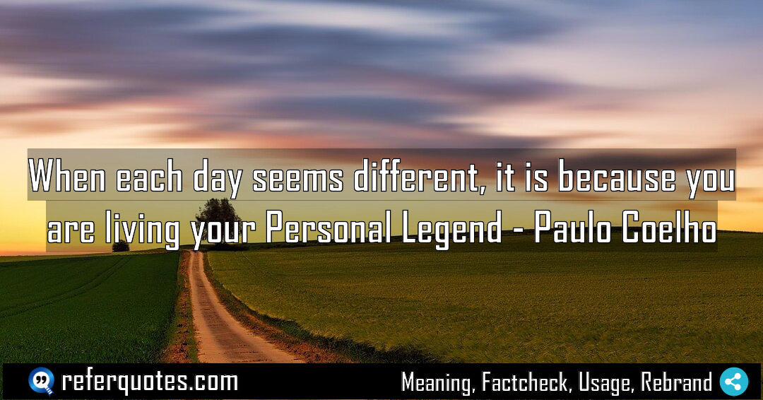 | Quotation | When each day seems different, it is because you are living your Personal Legend |